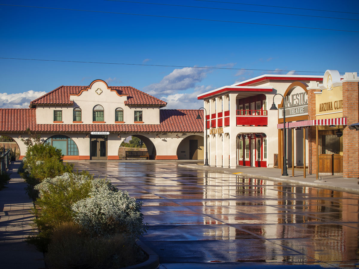 Project features: The exhibit includes four original restored railroad cottages that housed early railroad workers and their families (768-813 sf). The exhibit also features re-creations and representations of early businesses, including: the Las Vegas Train Depot (1,800 sf), the Lincoln Hotel (455 sf), the Arizona Club (665 sf), a mercantile (559 sf), the First State Bank (307 sf) and the outdoor Majestic Theatre (900 sf). Collectively, these buildings represent approximately 4,700 sf of exhibit space.